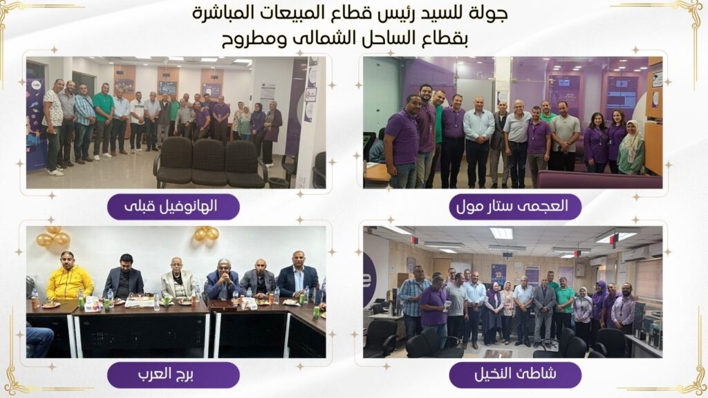 قام السيد الأستاذ سامح زاهر رئيس قطاع المبيعات المباشرة بجولة ميدانية موسعة شملت عددًا من مراكز المبيعات التابعة لقطاعى ( الساحل الشمالى و مطروح – اسكندرية ) و قد تمت زيارة قطاع الساحل الشمالى و مطروح بمرافقة كل من السيد المهندس محمود شامة – رئيس قطاع مناطق الساحل الشمالى و مطروح السيد المهندس علاء محمد ابراهيم مدير عام المنطقة الثانية بقطاع الساحل الشمالى و مطروح