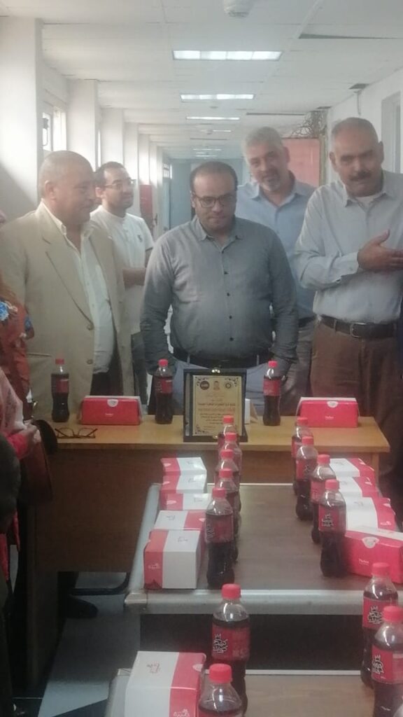 صور من حفل معاش الأستاذ محمد حسن رئيس قسم التفتيش الهندسي بالمنطقة الثالثة شرق القاهرة تحت رعاية المهندس محمد بسيوني مدير عام المنطقة الثالثة وحضور الأستاذ طارق عبدالحافظ رئيس لجنة شرق والقاهرة الجديدة والسادة أعضاء اللجنة النقابية متمنين له دوام الصحة والعافية .