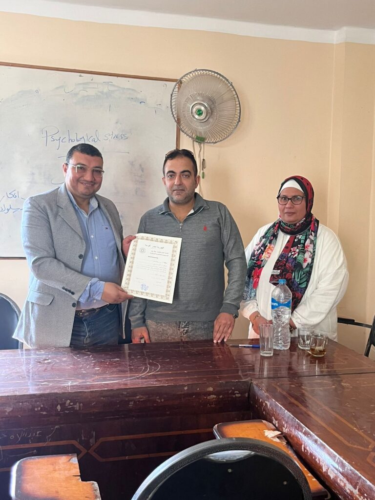 و غرس قيم جديدة وتنمية روح الإبداع والوعي بأهمية العمل لتحقيق استقرار بيئة العمل وزيادة الإنتاجية. وفي نهاية الدورة قدم الشكر للأستاذة: إيمان نايل مدير المعهد والدكاترة المحاضرين بالدورة علي مجهودهم وإفادة الزملاء وقام بتسليم الشهادات للسادة الزملاء .