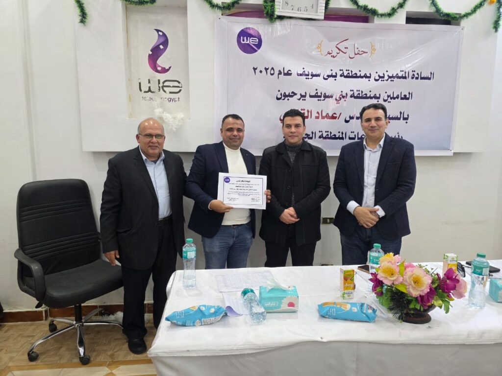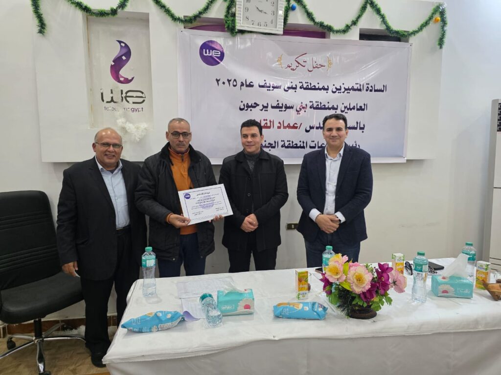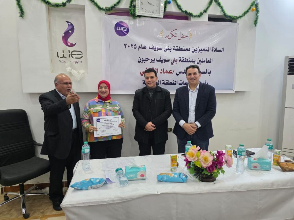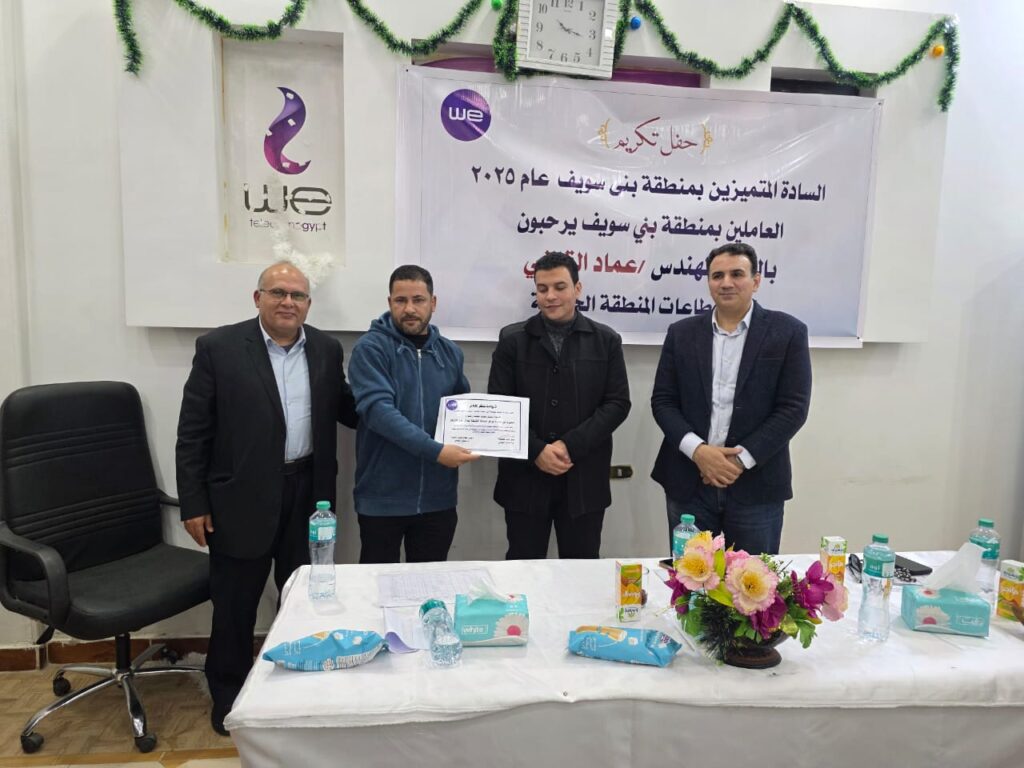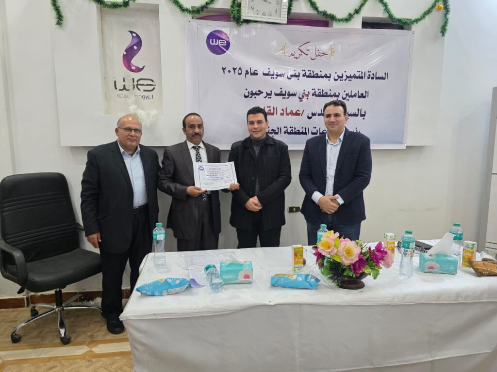نظمت منطقة تليفونات بني سويف حفل تكريم الزملاء المميزين عن عام 2025 وذلك برئاسة المهندس جمال الجبالي مدير عام المنطقة وبمشاركة المهندس محمد الموجي رئيس قطاع شمال الصعيد وبحضور المهندس عماد القاضي رئيس قطاعات المنطقة الجنوبية .