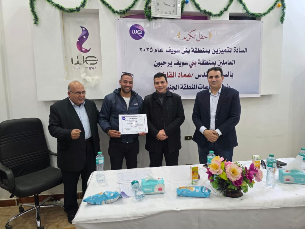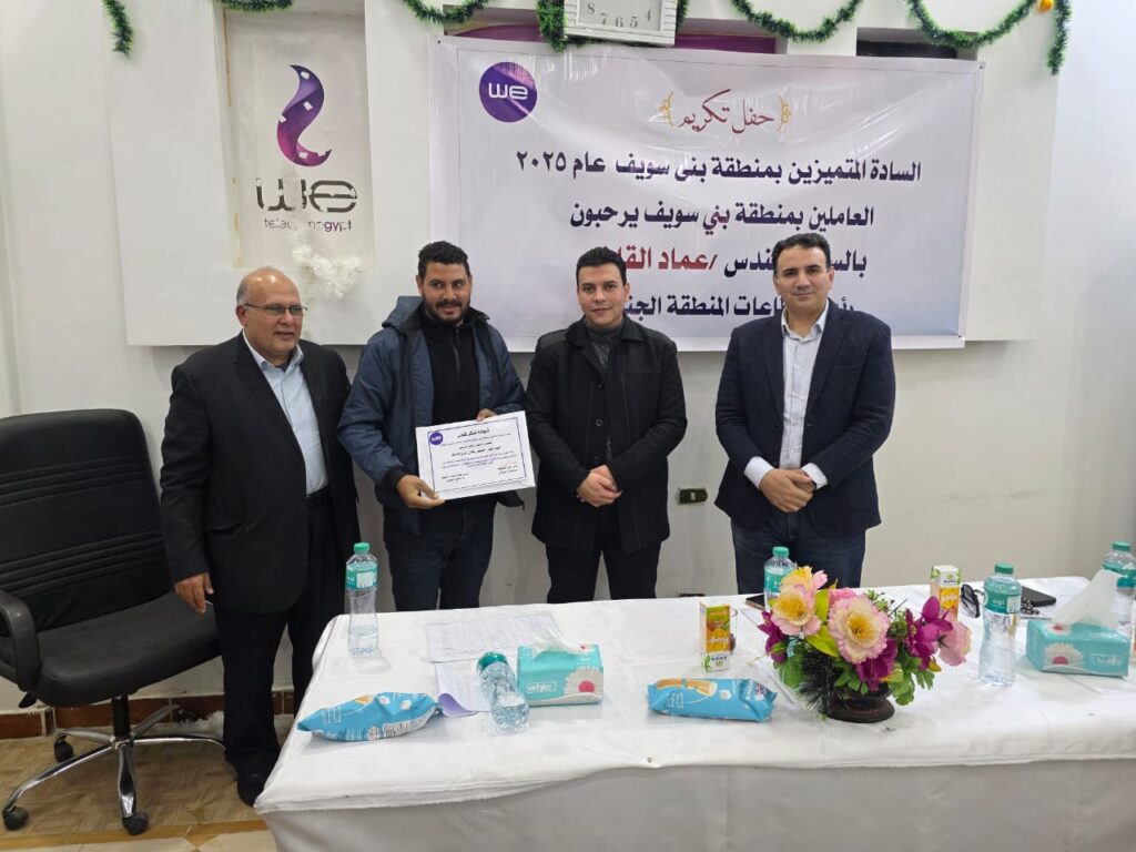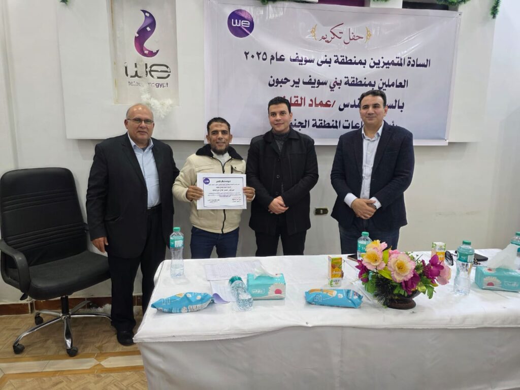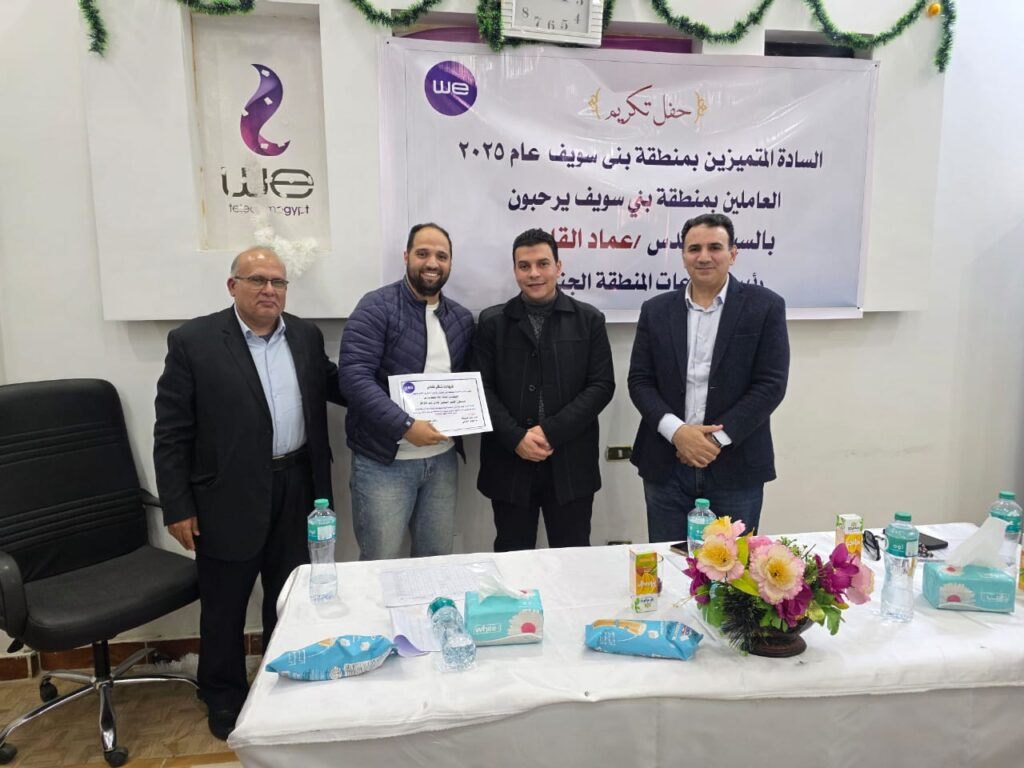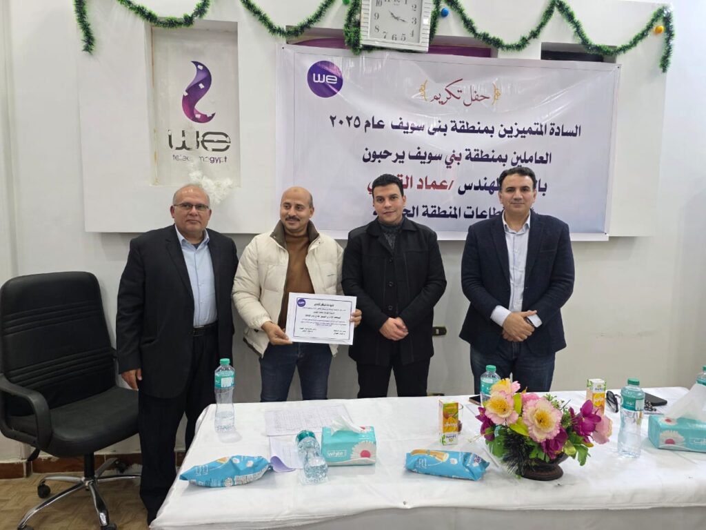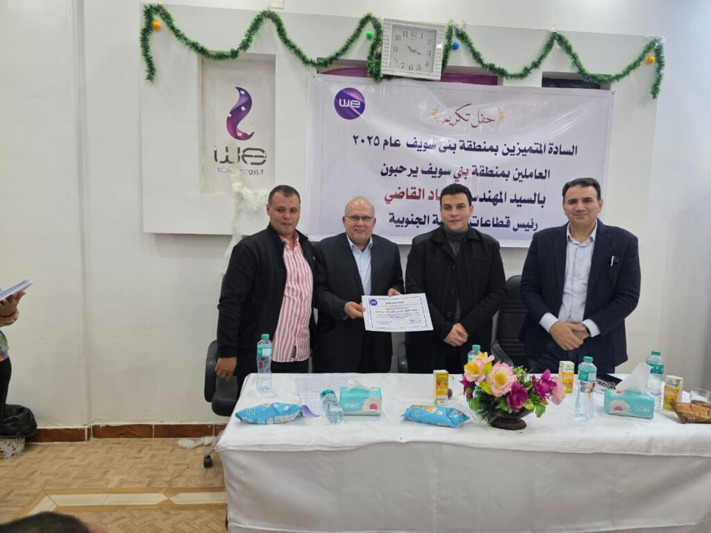 نظمت منطقة تليفونات بني سويف حفل تكريم الزملاء المميزين عن عام 2025 وذلك برئاسة المهندس جمال الجبالي مدير عام المنطقة وبمشاركة المهندس محمد الموجي رئيس قطاع شمال الصعيد وبحضور المهندس عماد القاضي رئيس قطاعات المنطقة الجنوبية .